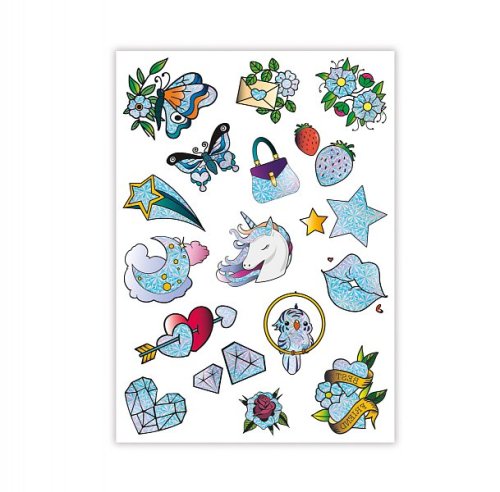 Tetovací mánie se právě stala super třpytivou s touto fantastickou sadou glam třpytivých přenosných tetování. Spousta třpytivých jiskřivých tetování pro nasměrování vašeho stylu se super elegantním nádechem! Vše, co musíte udělat, je vystřihnout tetování, které se vám líbí, přitisknout ho ke kůži, namočit houbou a můžete vyrazit! Tato hra podněcuje kreativitu a umožňuje dětem vyjádřit se pomocí tetování a vytvářet originální vzhled pro každou příležitost! Rozměr balení: 14,5 x 18,5 x 0,2 cm Věk: 6+