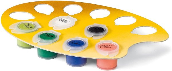 vysoce kvalitní, pevné plátno o velikosti 18 x 24 cm s obrazovou předlohou s očíslovanými plochami, sadu akrylových barev, štětec, kartonový stojánek pro kelímky s barvami a rámeček.
