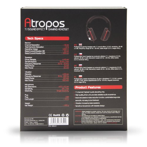 Nekompromisní USB sluchátka Crono Atropos s virtuálním surround zvukovým efektem 7.1 a vibračním efektem jsou určena pro pravé hráče, kteří chtějí jen to nejlepší. Poskytnou vám skvělý herní zážitek a ještě lépe vás vtáhnou do děje. Představte si, že jste přímo na bojišti nebo na závodní dráze - s těmito sluchátky se to stane realitou.