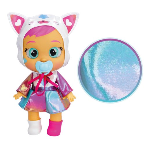 Cry Babies se nyní vydávají ke hvězdám v sérii Cry Babies Stars. Jako všechny vaše oblíbené postavy Cry Babies, když ji vyjmete z úst dudlík budou ronit slzy. Jejich oči jsou plné hviezd stejně jako noční obloha. Vydává až 10 realistických dětských zvuků. Dejte jim dudlík zpět do pusy, aby přestali plakat a byli zase šťastné. S panenkami Cry Babies si děti budou hrát jako s opravdovými miminky. Můžou je chovat, uvidí je brečet, můžou je převlékat a starat se o ně. Vyžadauje 3xAA baterie. Doporučený věk 3+.