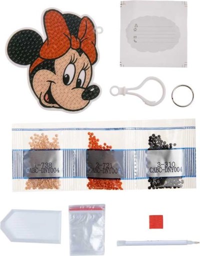 Kreativní sada pro výrobu přívěsku s motivem Minnie pomocí kamínků.