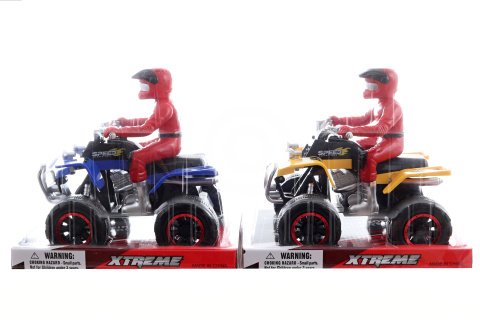 Čtyřkolka s jezdcem na setrvačník. Materiál plast. Rozměry balení 21x20x13 cm. 2 barvy - dodáváme dle skladové dostupnosti. Věk 3+