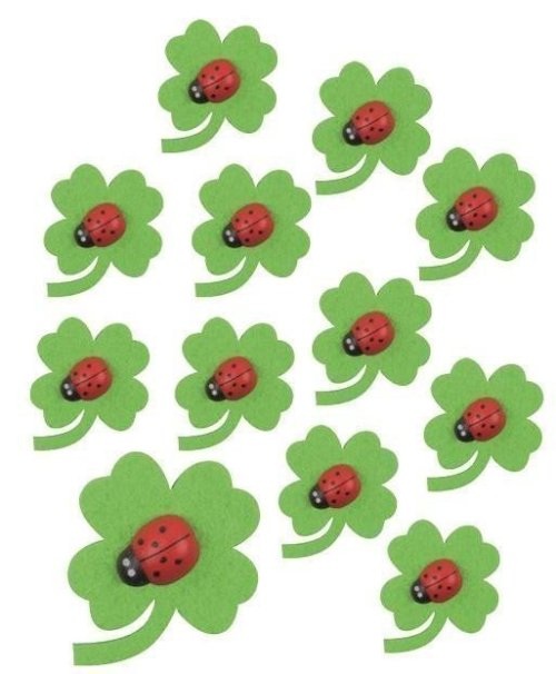 Čtyřlístky filcové s beruškou s lepíkem 3 cm, 12 ks v sáčku
