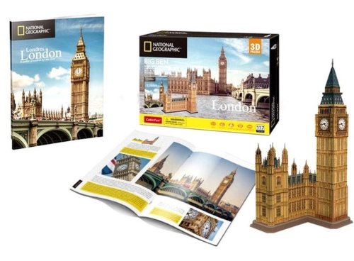 Jedinečný 3D model slavné dominanty anglického Londýna. 3D puzzle - stavebnice ze série National Geographic od CubicFun vyrobená ze speciálního materiálu - asi 3mm silné pěny potažené laminovaným potištěným papírem. Součástí balení je cestovní průvodce po Londýně v angličtině. Sestavování 3D puzzle Cubicfun je zábavou pro celou rodinu. Hotové modely mohou být sběratelským a dekorativním doplňkem bytu nebo dětského pokoje. Dílky se k sobě sestavují pomocí návodu bez použití lepidla a nůžek - předražené dílky pouze jednoduše vylomíte z archu. Orientační čas na sestavení: 120 - 220 minut Big Ben je hovorové označení používané pro hodinovou věž která je součástí budovy Westminsterského paláce vedle Temže v Londýně a neformální pojmenování Velkého zvonu. Věž se tyčí nad severovýchodní straně paláce, ve kterém zasedá parlament. Více na Wikipedii Rozměr složeného puzzle cca 25,7 x 20,9 x 49,2 cm