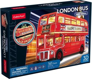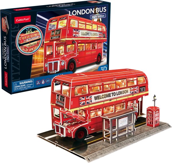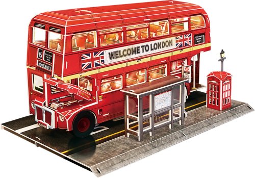 Úchvatný 3D model Londýnského autobusu s LED osvětlením! 3D puzzle - stavebnice ze série Night Edition od CubicFun vyrobená ze speciálního materiálu - asi 3mm silné pěny potažené laminovaným potištěným papírem. Sestavování 3D puzzle Cubicfun je zábavou pro celou rodinu. Hotové modely mohou být sběratelským a dekorativním doplňkem bytu nebo dětského pokoje. Dílky se k sobě sestavují pomocí návodu bez použití lepidla a nůžek - předražené dílky pouze jednoduše vylomíte z archu. Poznámka: Baterie nejsou součástí balení. Rozměr složeného puzzle cca 32,7 x 22,5 x 17,5 cm