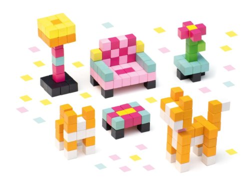 CUBIKA je nová značka dřevěných hraček vyrobených pouze z ekologicky pěstovaného dřeva s velmi precizním opracováním a líbivým designem. Pixel "Pokojík s kočičkou" - dřevěná 3D stavebnice 200 kostiček je tematická kreativní sada, která umožňuje z kostiček o velikosti 1 x 1 cm poskládat vyobrazený motiv na krabici. Jednotlivé barevné kostičky se k sobě lepí pomocí malých oboustranných lepících koleček dle přiloženého návodu. Sortiment hraček značky CUBIKA pomáhá dětem rozvíjet především senzomotorické schopnosti a dovednosti, logické myšlení, kreativitu, představivost a různé poznávací znalosti. Hračky jsou vyrobeny z nejkvalitnějšího javoru a buku a k barvení se používají též vysoce kvalitní barvy na vodní bázi, které jsou naprosto bezpečné pro děti a nemají žádný zápach. Všechny výrobky této značky mají německý certifikát TÜV a jsou vyrobeny dle evropské normy pro bezpečnost hraček EN 71. Nevhodné pro děti do 7 let. Vyrobeno v Evropě.