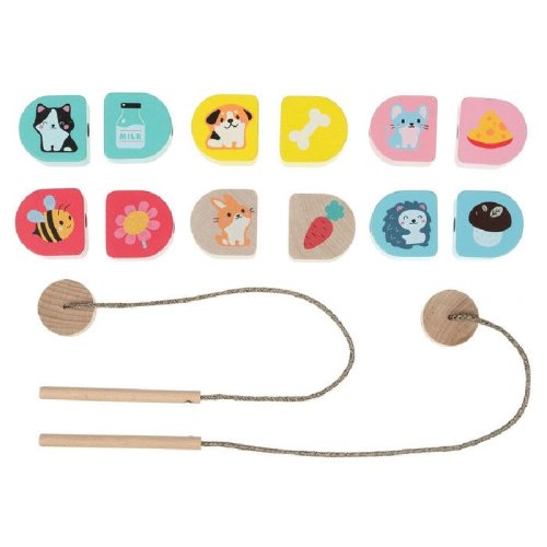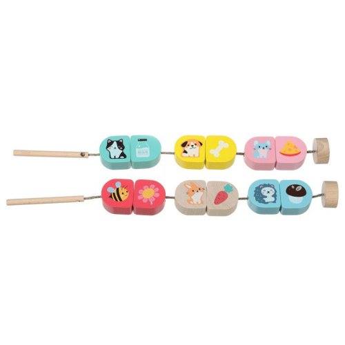 CUBIKA je značka dřevěných hraček vyrobených pouze z ekologicky pěstovaného dřeva s velmi precizním opracováním a líbivým designem. Navlékací set Co jíme je ideální hrou pro procvičení jemné motoriky a logického myšlení. Sada nabízí 12 dřevěných navlékacích prvků, které tvoří 6 párů a dvě tkaničky s dřevěným kolíčkem na prostrkování na jedné straně a zarážkou na druhé straně. Cílem je najít ke každému zvířátku jeho oblíbené jídlo a oba dřevěné prvky navléci tak, aby tvořili pár. Sortiment hraček značky CUBIKA pomáhá dětem rozvíjet především senzomotorické schopnosti a dovednosti, logické myšlení, kreativitu, představivost a různé poznávací znalosti. Hračky jsou vyrobeny z nejkvalitnějšího javoru a buku a k barvení se používají též vysoce kvalitní barvy na vodní bázi, které jsou naprosto bezpečné pro děti a nemají žádný zápach. Všechny výrobky této značky mají německý certifikát TÜV a jsou vyrobeny dle evropské normy pro bezpečnost hraček EN 71. Nevhodné pro děti do 3 let. Vyrobeno v Evropě.