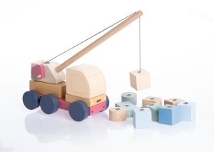 CUBIKA je nová značka dřevěných hraček vyrobených pouze z ekologicky pěstovaného dřeva s velmi precizním opracováním a líbivým designem a tento výrobek patří do nové kolekce vyrobené v pastelových barvách. Autojeřáb s magnetem je dřevěná skládačka s 14 barevnými díly. 10 samostatných kostek představujících náklad má v sobě zabudované kovové plíšky, díky kterým je magnet na jeřábu může zvednout a přemísťovat. Délka auta 16 cm, délka otočného jeřábního rameno 26 cm. Sortiment hraček značky CUBIKA pomáhá dětem rozvíjet především senzomotorické schopnosti a dovednosti, logické myšlení, kreativitu, představivost a různé poznávací znalosti. Hračky jsou vyrobeny z nejkvalitnějšího javoru a buku a k barvení se používají též vysoce kvalitní barvy na vodní bázi, které jsou naprosto bezpečné pro děti a nemají žádný zápach. Všechny výrobky této značky mají německý certifikát TÜV a jsou vyrobeny dle evropské normy pro bezpečnost hraček EN 71. Nevhodné pro děti do 3 let. Vyrobeno v Evropě.