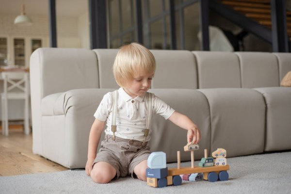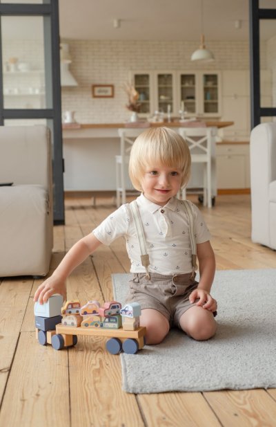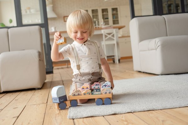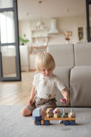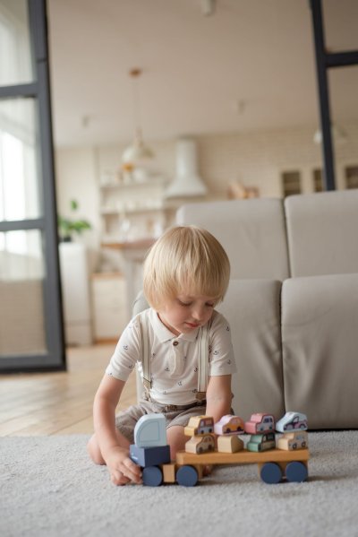CUBIKA je nová značka dřevěných hraček vyrobených pouze z ekologicky pěstovaného dřeva s velmi precizním opracováním a líbivým designem a tento výrobek patří do nové kolekce vyrobené v pastelových barvách. Kamion s auty je dřevěná skládačka s 12 barevnými díly, které je třeba poskládat tak, aby kamion mohl hromadně přepravovat všech 8 autíček. Délka kamionu 32 cm, jednotivé autíčka mají velikost cca 5 cm. Sortiment hraček značky CUBIKA pomáhá dětem rozvíjet především senzomotorické schopnosti a dovednosti, logické myšlení, kreativitu, představivost a různé poznávací znalosti. Hračky jsou vyrobeny z nejkvalitnějšího javoru a buku a k barvení se používají též vysoce kvalitní barvy na vodní bázi, které jsou naprosto bezpečné pro děti a nemají žádný zápach. Všechny výrobky této značky mají německý certifikát TÜV a jsou vyrobeny dle evropské normy pro bezpečnost hraček EN 71. Doporučený věk od 18 měsíců. Vyrobeno v Evropě.