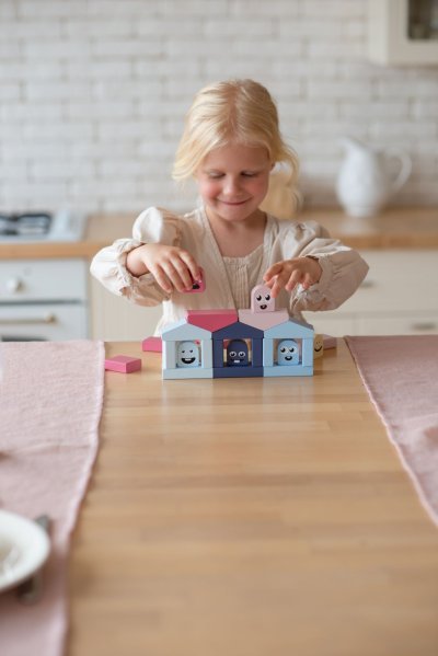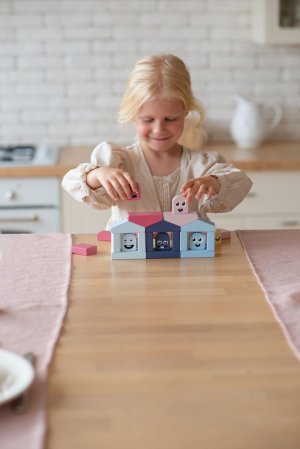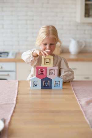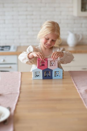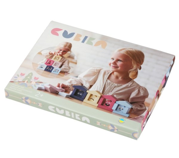 CUBIKA je nová značka dřevěných hraček vyrobených pouze z ekologicky pěstovaného dřeva s velmi precizním opracováním a líbivým designem a tento výrobek patří do nové kolekce vyrobené v pastelových barvách. Dřevěná stavebnice se 30 barevnými prvky včetně kostiček s emotikony nabízí mnoho zábavy. Každý z šesti domečků má svého obyvatele v příslušné barvě, které je třeba správně do domečku umístit. Děti se tak formou zábavné hry učí poznávat barvy. Fantazii při stavitelské činnosti se zde však meze nekladou. Z kostiček lze hravě postavit různé architektonické komplexy. Výška všech složených domečků 36 cm. Sortiment hraček značky CUBIKA pomáhá dětem rozvíjet především senzomotorické schopnosti a dovednosti, logické myšlení, kreativitu, představivost a různé poznávací znalosti. CUBIKA je nová značka dřevěných hraček vyrobených pouze z ekologicky pěstovaného dřeva s velmi precizním opracováním a líbivým designem. Hračky jsou vyrobeny z nejkvalitnějšího javoru a buku a k barvení se používají též vysoce kvalitní barvy na vodní bázi, které jsou naprosto bezpečné pro děti a nemají žádný zápach. Všechny výrobky této značky mají německý certifikát TÜV a jsou vyrobeny dle evropské normy pro bezpečnost hraček EN 71. Doporučený věk od 24 měsíců. Vyrobeno v Evrop