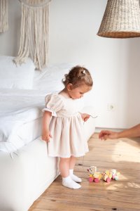 CUBIKA je nová značka dřevěných hraček vyrobených pouze z ekologicky pěstovaného dřeva s velmi precizním opracováním a líbivým designem a tento výrobek patří do nové kolekce vyrobené v pastelových barvách. Tahací dřevěný pejsek na provázku je ideálním společníkem na cesty pro malé děti. Díky své členité konstrukci je jako živý. Délka tkaničky cca 60 cm. Sortiment hraček značky CUBIKA pomáhá dětem rozvíjet především senzomotorické schopnosti a dovednosti, logické myšlení, kreativitu, představivost a různé poznávací znalosti. Hračky jsou vyrobeny z nejkvalitnějšího javoru a buku a k barvení se používají též vysoce kvalitní barvy na vodní bázi, které jsou naprosto bezpečné pro děti a nemají žádný zápach. Všechny výrobky této značky mají německý certifikát TÜV a jsou vyrobeny dle evropské normy pro bezpečnost hraček EN 71. Doporučený věk od 18 měsíců. Vyrobeno v Evropě.