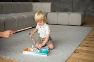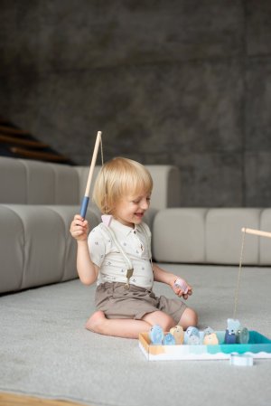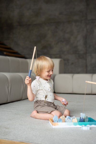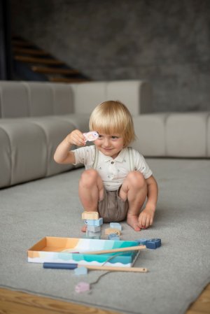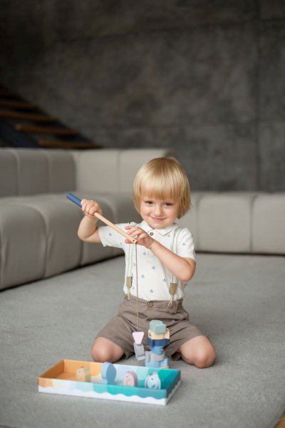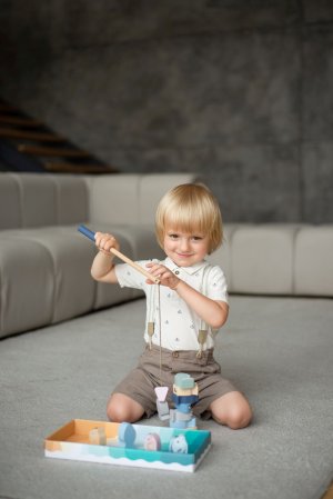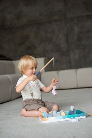 CUBIKA je nová značka dřevěných hraček vyrobených pouze z ekologicky pěstovaného dřeva s velmi precizním opracováním a líbivým designem a tento výrobek patří do nové kolekce vyrobené v pastelových barvách. Rybolov je známá hra pro děti, jejímž cílem je vylovit co nejrychleji nejvíce rybiček z rybníka. K tomu slouží dva pevné dřevěné pruty opatřené na svých koncích magnetem, protože každá rybička má v sobě zabudovaný kovový plíšek. Rybky pak vyskakují z vody jako živé. Délka prutů 31 cm, délka tkaniček 30 cm. Rybičky ve 3 velikostech: 4,5 x 2x 3 cm, 6 x 2 x 3 cm a 6,5 x 2 x 3 cm. Sortiment hraček značky CUBIKA pomáhá dětem rozvíjet především senzomotorické schopnosti a dovednosti, logické myšlení, kreativitu, představivost a různé poznávací znalosti. Hračky jsou vyrobeny z nejkvalitnějšího javoru a buku a k barvení se používají též vysoce kvalitní barvy na vodní bázi, které jsou naprosto bezpečné pro děti a nemají žádný zápach. Všechny výrobky této značky mají německý certifikát TÜV a jsou vyrobeny dle evropské normy pro bezpečnost hraček EN 71. Doporučený věk od 24 měsíců. Vyrobeno v Evropě.