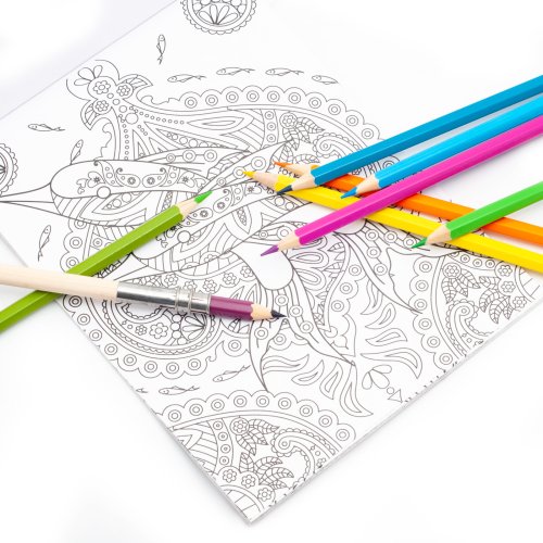 Maxi sada pastelek z topolového dřeva pro dospělé i děti s antistresovými omalovánkami.