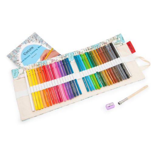 Sada pastelek z topolového dřeva v designovém pouzdře pro dospělé i děti s antistresovými omalovánkami.