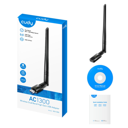 Cudy AC1300 Wi-Fi USB 3.0 síťová karta, ext. anténa (WU1400)