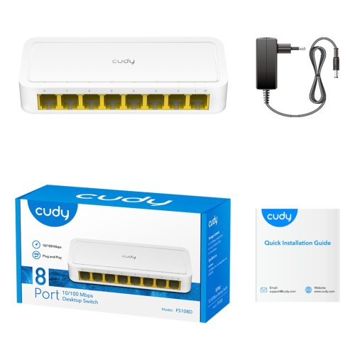 síťový přepínač (switch) pro propojení až 8 zařízení