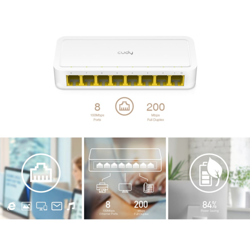 - síťový přepínač (switch) pro propojení až 8 zařízení - 8 portů RJ-45, non-blocking - 10/100 Mb/s porty s podporou auto-negotiation (detekce rychlosti zařízení) a auto-MDI/MDIX (detekce ne/křížených …