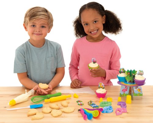 Zábavná sada pro opravdové pečení obsahující náčiní v zářivých barvách. Můžeš péct dortíky a sušenky, zdobit je pomocí zdobicí sady na polevu a vystavit je na podnosu. Sada obsahuje čtyři karty s jednoduchými recepty na vanilkové a čokoládové dortíky, sušenky a vanilkovou polevu. Obsah: váleček, špachtle, metla, 5 odměrek, 4 vykrajovátka na sušenky, 4 opakovaně použitelné silikonové košíčky na dortíky, 2 opakovaně použitelné sáčky na polevu a 5 zdobicích trysek, podnos, 8 dortových ozdob, 4 karty s recepty a návod