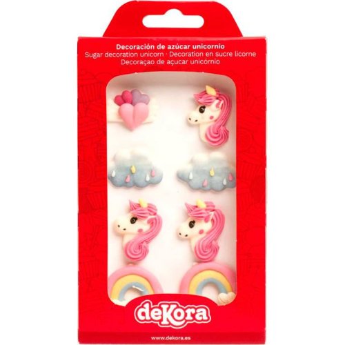 Cukrová dekorace na zdobení s tématem jednorožec, mraky, duha.