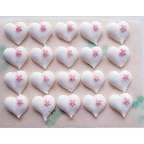 Cukrové dekorace srdíčka zdobená drobnou kytičkou. V balení 20 ks.