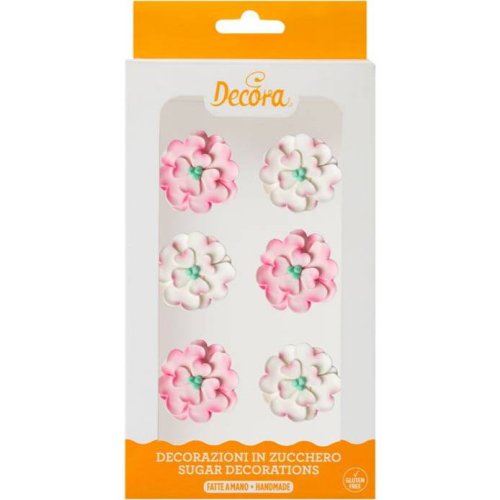 Cukrové dekorace bílo růžové kytičky, 6ks - Decora