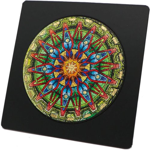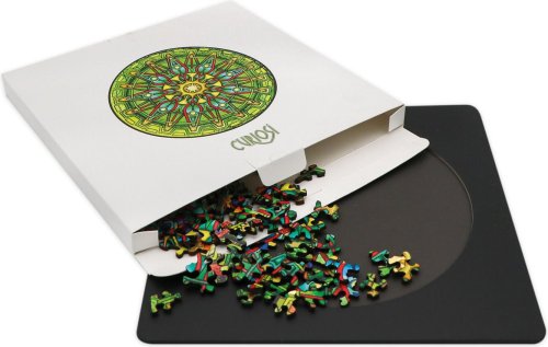 dva motivy v jednom puzzle = dvojnásobná výzva, neobvyklé tvary dílků, vysoce kvalitní dřevěné dílky, efekt zlatého lesku, dodáváno s rámečkem 235 x 235 mm.