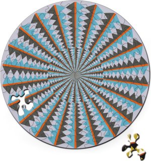 dva motivy v jednom puzzle = dvojnásobná výzva, neobvyklé tvary dílků, vysoce kvalitní dřevěné dílky, pevná krabička s kovovým víčkem, ideální jako dárek.