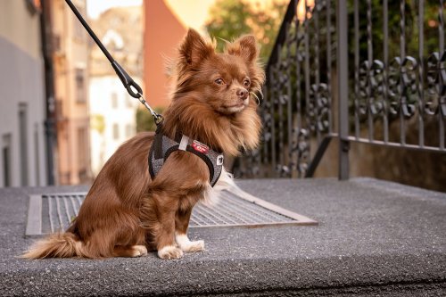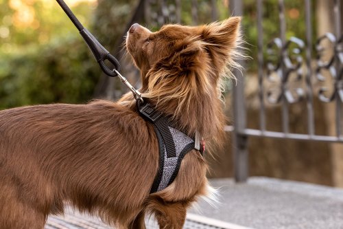 • Postroj vylepšený o praktickou sponu, díky které se vodítko a postroj dají připnout jednou rukou