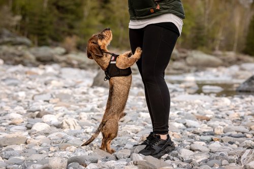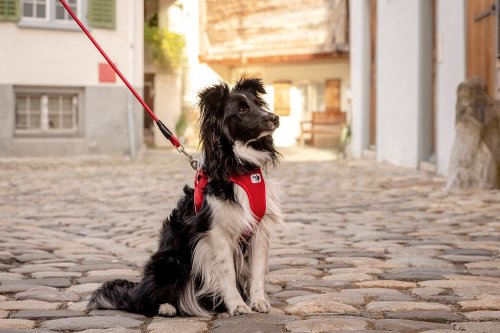 Postroj vhodný pro menší a středně velké psy nyní vylepšený o praktickou sponu. Je odolný vůči větru a vodě díky materiálu softshell, který je podšit lehkou prodyšnou síťovinou Air-Mesh. Rychlé a snadné oblékání. Nastavitelná velikost pomocí suchého zipu, aby se tak postroj dokonale přizpůsobil tělu psa. Překřížené nylonové popruhy zajišťují optimální rozložení napětí a chrání před poraněním krku. Polstrovaná přezka zajišťuje, aby se srst nezachytávala ani nedráždila. Postroj a vodítko lze nyní připnout jednou rukou pomocí spony. Vysoce pevný materiál spony vydrží tahové zatížení až 100 kg. Tato spona eliminuje „cvakavý“ zvuk klasických D kroužků a zároveň snižuje hmotnost postroje.
