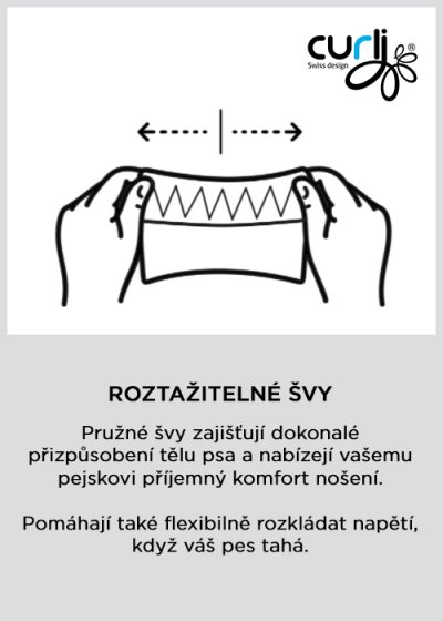• Optimální rozložení tahu a odlehčení tlaku díky elastickým švům, které se dokonalé přizpůsobují tělu vašeho psa a poskytují mu tak příjemný pocit při nošení.