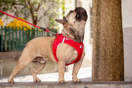 Postroj vhodný pro menší a středně velké psy nyní vylepšený o praktickou sponu. Je odolný vůči větru a vodě díky materiálu softshell, který je podšit lehkou prodyšnou síťovinou Air-Mesh. Rychlé a snadné oblékání. Nastavitelná velikost pomocí suchého zipu, aby se tak postroj dokonale přizpůsobil tělu psa. Překřížené nylonové popruhy zajišťují optimální rozložení napětí a chrání před poraněním krku. Polstrovaná přezka zajišťuje, aby se srst nezachytávala ani nedráždila. Postroj a vodítko lze nyní připnout jednou rukou pomocí spony. Vysoce pevný materiál spony vydrží tahové zatížení až 100 kg. Tato spona eliminuje „cvakavý“ zvuk klasických D kroužků a zároveň snižuje hmotnost postroje.
