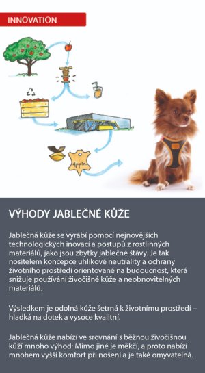 Dokonalá kombinace elegantního koženého vzhledu s nejvyšší kvalitou: První veganský postroj pro psy na světě vyrobený z jablečné kůže.