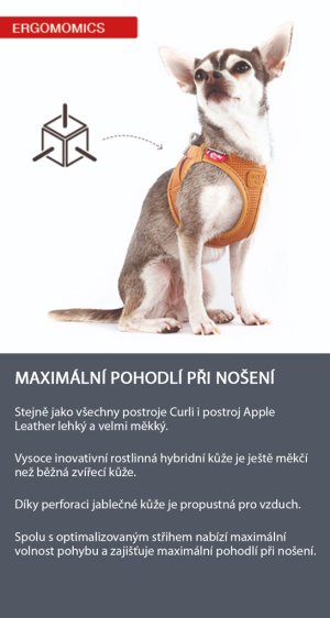 Stejně jako všechny postroje Curli je i tento postroj velmi lehký a velmi měkký. Vysoce inovativní rostlinná hybridní kůže je ještě měkčí než běžná zvířecí kůže.