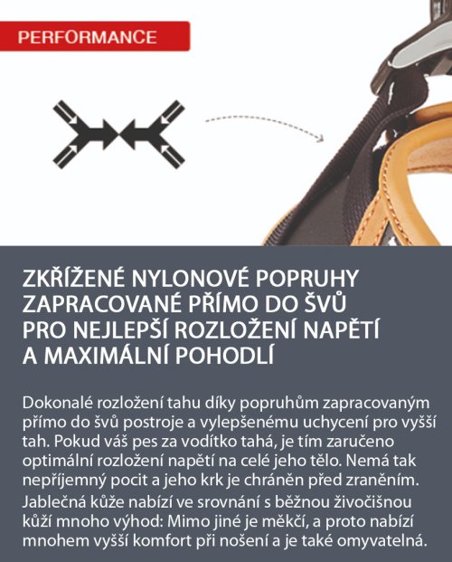 - Dokonalé rozložení napětí díky pásům všitým do švů postroje