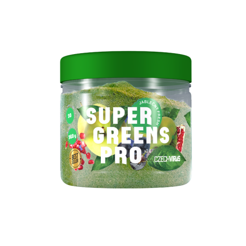 Nejlepší zelená směs na trhu? Běžná praxe: Hledáš produkty na pročištění těla, ale většina produktů obsahuje nefunkční množství hlavních ingrediencí (chlorelly, spiruliny, ječmene a pšenice) jen pro reklamu? Navíc za ceny převyšující 1000 Kč! Řešení: Super Greens PRO Náš produkt Super Greens PRO je odpovědí pro opravdu funkční produkt s obsahem super zelených látek. V každé dávce je skutečně funkční množství látek (2 gramy Chlorelly, 2 gramy Spiruliny, 0,5 gramů mladý ječmen, 0,5 gramů mladá pšenice), ne pár miligramů pouze pro reklamu! Tato originální formule byla výrobcem pilována opravdu dlouho, aby dokázala přinést vysoké množství aktivních látek, ale zároveň super chuť. Dost bylo přemáhání a zacpaného nosu při popíjení zeleného elixíru, nyní si můžeš na nápoji pochutnat a zároveň využít schopnosti všech látek, které jsou ve směsi obsaženy. Opravdu bohaté složení Super Greens PRO V2.0 je směs zelených potravin s mnoha přírodními látkami a vlákninou. Obsahuje dostatečnou dávku adaptogenů z rostlinných zdrojů. Mimo již zmiňované zelené "super potraviny" jsme do směsi přidali naše vlastní blendy – V-AntiOxi-Blend®, V-Shrooms-Blend® a V-DigeBlend®. Naše vlastní směsi nahradily původní VitaBerry® a VitaVeggie®, které výrobce z USA přestal kvůli nekonzistentní kvalitě na trh dodávat. Tyto 3 blendy posouvají novou verzi našich Greens ještě o úroveň výše – obsahuje směs antioxidantů, směs hub a směs trávících enzymů. Samozřejmostí je přírodní ochucovadlo a absence syntetických barviv. Slazeno pouze steviol-glykosidy (sladidlo z rostliny stévie - přírodního původu). 0 plnidel, 0 zahušťovadel, 0 blbostí, které nemají v kvalitním produktu co dělat! Výroba a látky Všechny látky v Super Greens PRO jsou laboratorně testované na čistotu a zakázané látky. Výroba poté probíhá ve firmě s více než 20-ti letou tradicí s potravinovými doplňky a vlastní certifikát kvality EN ISO 9001 a 22000. Super Greens PRO Látky pod drobnohledem Chlorella je jednobuněčná zelená sladkovodní řasa z biologického oddělení Chlorophyta. Je považována za "super potravinu" díky jejím vlastnostem a nutričním hodnotám. Oproti ostatním rostlinám obsahuje velké množství chlorofylu, který je velice přínosný pro lidské tělo. Při jejich výrobě chlorella podstupuje proces dezintegrace, který je nutný, aby zdraví prospěšné látky byly stravitelné člověkem. Spirulina je sladkovodní sinice, která se řadí mezi zelené potraviny. Spirulina je řazena mezi významné antioxidanty. Přispívá k přirozené obranyschopnosti organismu, k normální hladině cukru v krvi, ke kontrole hmotnosti a přirozené tvorbě svalové hmoty. Celkově podporuje vitalitu organismu. Mladý ječmen je přírodní produkt, který obohacuje stravu o řadu vitamínů, minerálů, enzymů, chlorofyl a jiné antioxidanty. Listy mladého ječmene se sklízí, oplachují a odšťavňují. Vzniklá šťáva je poté usušena při nízké teplotě. Mladá pšenice neboli prášek z pšeničné trávy je bohatým zdrojem chlorofylu. Bílkovinné složení pšeničné trávy obsahuje všech 8 esenciálních aminokyselin. Rovněž obsahuje mnoho vitamínů a minerálů. Taktéž obsahuje ß-glukan, polysacharidovou molekulu, která funguje jako antioxidant. V-AntiOxi-Blend® je mix extraktů z ovoce, zeleniny a rostlin. Pečlivě vybrané látky kombinují komplexní spektrum obsahující rutin, extrakt z mořské borovice, extrakt z hrozen, extrakt z petržele, kvercetin, naringin, extrakt z plodů jalovce, lykopen a extrakt z granátového jablka. V-Shrooms-Blend® je směs hub, které jsou známé tisíce let z čínské medicíny. Tato směs obsahuje houbu Reishi (Ganoderma lucidum) a Cordyceps (Cordyceps sinensis). Směs má vliv na přirozenou obranyschopnost - imunitní systém, normální funkci oběhové soustavy a normální hladinu cholesterolu v krvi. V-Dige-Blend® je směs trávících enzymů, které napomáhají lepšímu využití všech obsažených aktivních látek v produktu. Obsahuje Bromelain a Papain. Doporučené dávkování: