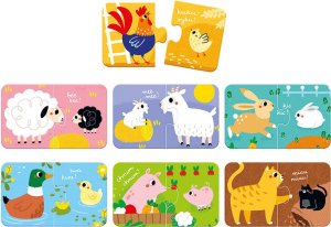 Farmářská zvířátka jsou puzzle navržené pro ty nejmenší. Zajímavé a barevné ilustrace upoutají pozornost dětí. Zkuste zjistit, zda vaše dítě dokáže najít dvojice z rozhozených dílků puzzle! Hledání a spojování polovin učí dítě zlepšovat koordinaci oko-ruka. Puzzle také rozvíjejí manuální dovednosti a schopnost pozorování. Skvělá sada pro ty nejmenší. Sada obsahuje 7 dvoudílných puzzlů Vhodné pro děti od 18 měsíců.