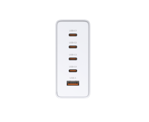Pět USB-C / USB-A portů: Nabízí 4× USB-C a 1× USB-A port pro současné nabíjení až pěti zařízení