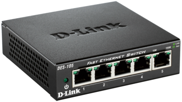 PŘEHLED Přepínač D-Link DES-105 Fast Ethernet poskytuje pro SOHO a SMB cenově výhodný způsob, jak vytvořit malou síť a připojit počítače, bezdrátové přístupové body, IP kamery, síťové tiskárny a další ethernetová zařízení rychle a snadno bez složité konfigurace. Tento přepínač je dodáván s 5 porty Fast Ethernet s funkcí automatického snímání pro detekci maximální rychlosti připojených zařízení, což vám umožní provozovat vaši síť s nejlepším možným výkonem. Díky designu bez ventilátoru je tento přepínač zcela tichý, ideální pro kanceláře, knihovny nebo zasedací místnosti.