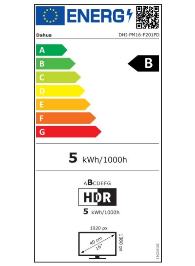 Monitor vyniká nízkou spotřebou energie, která činí maximálně 8 W při běžném provozu a méně než 0,5 W v pohotovostním režimu. Napájení je zajištěno prostřednictvím 5V/3A adaptéru s podporou Power Delivery 20W.