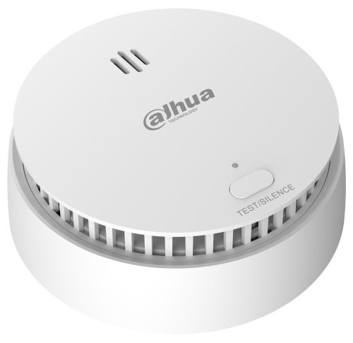 Bezdrátový detektor požáru/kouře se sirénou 85-90 dB(A). Pokročilá elektronika ve spojení s fotoelektrickou komorou pro snímání kouře zajišťuje včasnou detekci kouře. Včasné hlášení kouřového poplachu lze zobrazit v aplikaci DMSS. Provozní frekvence je 868 MHz.