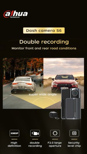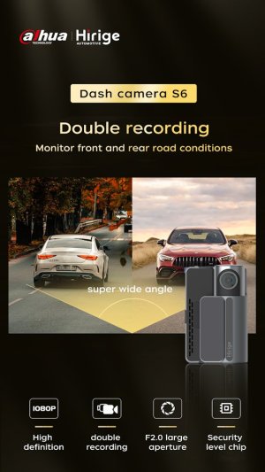 Další předností je dotykový displej, který usnadní ovládání a máte ho vždy na dosah prstu. Autokamera Dahua S6 disponuje zabudovaným Wi-Fi modulem, který umožní jednoduché propojení a sdílení. Samozřejmostí je integrovaný G-senzor, který v případě detekce nárazu nebo silných vibrací automaticky uzamkne aktuálně nahrávaný záznam. Praktická konstrukce umožňuje využití také přídavné zadní kamery, díky čemuž máte kompletní přehled o dění před i za vozidlem.