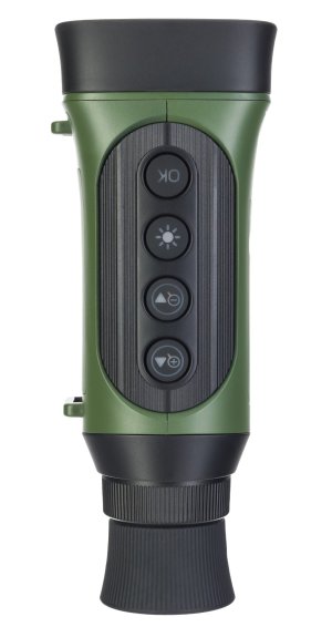 Ovládání dalekohledu je velmi jednoduché a snadno se s ním naučíte. Na čočce objektivu naleznete zaostřovací kolečko. Osvětlení nastavíte pomocí tlačítek, které se nachází na horním panelu v dosahu vašich prstů. Vysoce kvalitní skleněná optika a snímač CMOS vytvoří na displeji dalekohledu obraz, abyste měli vždy přehled o sledovaném objektu či okolí.
