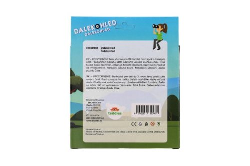 Prozkoumej svět kolem sebe. Dalekohled je ideální na výlety a vycházky do přírody. Sledujte z bezpečné vzdálenosti ptáky skrývající se v korunách stromů, zvířátka na louce nebo lesní zvěř. Velikost dalekohledu je 9 cm. Rozměry balení 16 x 19 x 5 cm. Vhodné pro děti od 3 let.