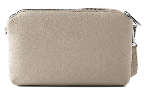Poznámka Dámská crossbody kabelka, v šedé barvě, 2 zipové kapsy, nastavitelný odnímatelný crossbody popruh.