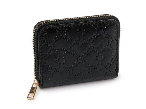 Dámská peněženka s motivem srdíček je elegantním a stylovým doplňkem, který upoutá pozornost. Je ideální pro každodenní použití, díky kompaktnímu rozměru se snadno vejde do různých typů kabelek či batohů. Zavírá se na zip. Uvnitř najdete hlavní prostor oddělený přepážkou na dva menší. V přepážce je mincovník na zip. Po stranách jsou ještě 4 přihrádky na karty.