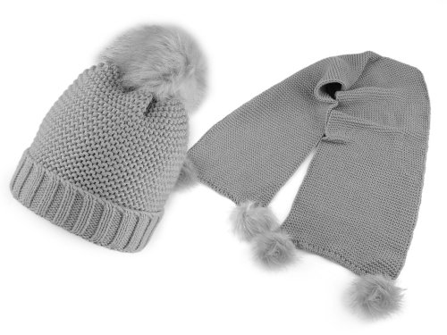 Sada s čepicí a šálou je skvělým a stylovým společníkem do zimního počasí. Čepice má ohrnutý lem a velikou chlupatou bambuli. Šála má na každém konci 2 bambule, všechny bambule věrně imitují kožešinu. Volně položený obvod lemu čepice je 38 cm, natažený až 52 cm. Výška čepice (měřeno bez bambule) je 20 cm. Výška lemu je 6 cm. Průměr bambule je cca 12 cm. Šířka šály je 26 cm, délka je 135 cm.