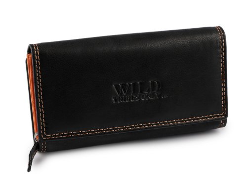 Dámská kožená peněženka 9,5x17 cm - černá oranžová