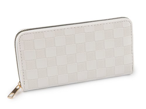 Dámská peněženka s povrchovou kostkovanou strukturou je elegantním a stylovým doplňkem, který upoutá pozornost. Peněženka obsahuje jednu hlavní kapsu, která se zapíná na kovový zip. Uvnitř je peněženka členěná do tří velkých přihrádek na papírové bankovky a jedné uzavíratelné kapsy na zip, vhodné k ukládání mincí a různých drobností. Po vnitřních stranách peněženky jsou přihrádky na karty a dvě větší na doklady, účtenky apod.