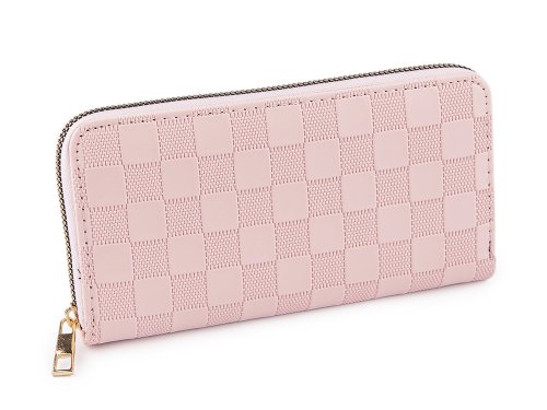 Dámská peněženka s povrchovou kostkovanou strukturou je elegantním a stylovým doplňkem, který upoutá pozornost. Peněženka obsahuje jednu hlavní kapsu, která se zapíná na kovový zip. Uvnitř je peněženka členěná do tří velkých přihrádek na papírové bankovky a jedné uzavíratelné kapsy na zip, vhodné k ukládání mincí a různých drobností. Po vnitřních stranách peněženky jsou přihrádky na karty a dvě větší na doklady, účtenky apod.