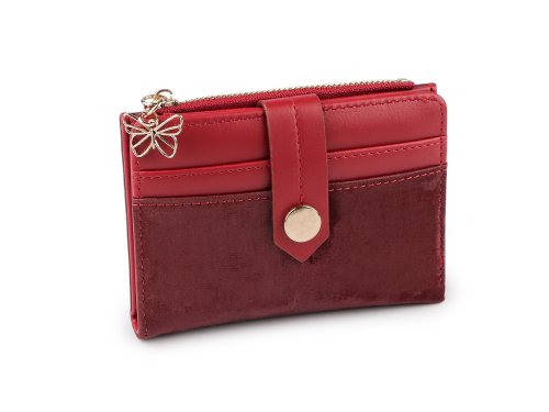Šikovná malá peněženka má kompaktní tvar, vejde se do každé kabelky. Z části je potažená elegantní imitací sametu, který peněžence přidává luxusní vzhled. Přední strana peněženky se zapíná na zápinku s patentem. Uvnitř najdete 6 přihrádek na kreditní karty, z toho je jedna průhledná a přihrádku na bankovky. Kapsička na mince se zapíná na zip, je ozdobená přívěskem kovového motýla.